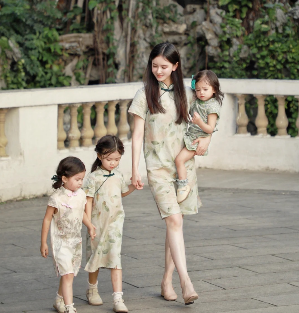 帶娃出街想要引爆回頭率,除了一家高顏值就是同步的時髦裝扮,而照片張這母女四口卻全占。不僅旗袍造型獨具韻味,母女間基因的強大也讓人羨慕,幾乎是共用一張臉的輪廓,但自信看每個人的旗袍、五官又各有風格,難怪照片一出就引髮網友們的關注。